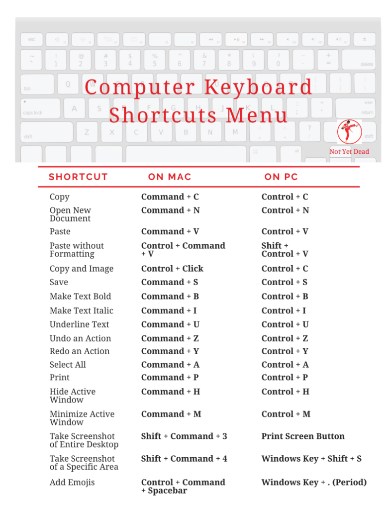 Someone (maybe some guy with a little EXTRA time on his hands) actually figured out that you can save 64 hours each year by using keyboard shortcuts. That might be true, but that’s not why I wanted to learn them … I’d probably gain 64 shitty hours cleaning bathrooms instead of 64 great hours drinking tequila and dancing. So no, that’s not why I learned them (nor necessarily why you might want to either).
